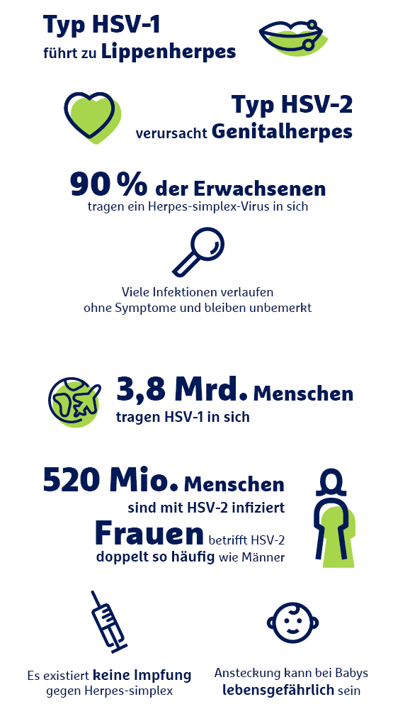 Allerdings befinden sich Herpes-Viren manchmal auch auf Haut und Schleimhäuten, ohne Symptome zu verursachen. So können die Erreger unbemerkt auf andere Menschen übertragen werden.