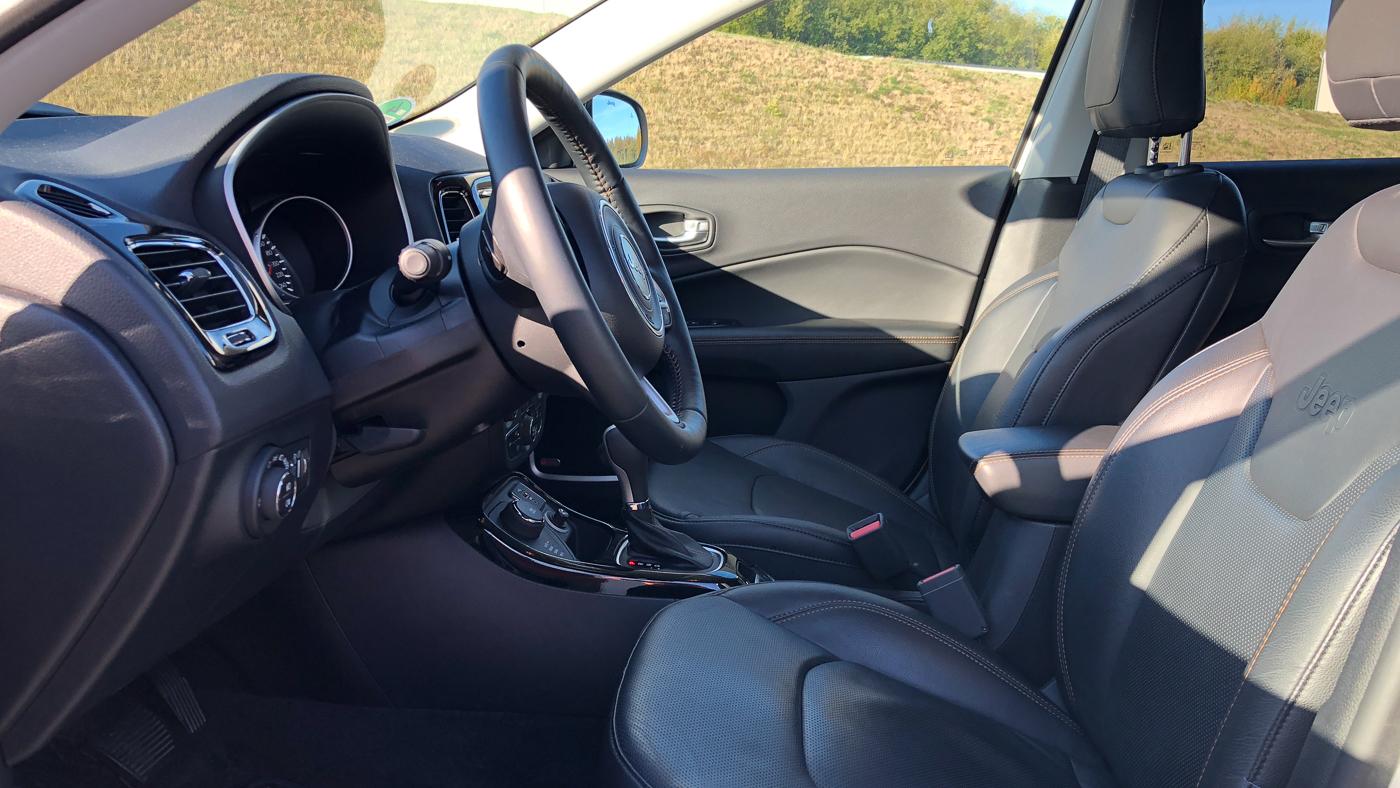 Dennoch: Es lebt sich gut im Interieur des Jeep Compass. Die Vordersitze geben guten Halt, das Leder könnte etwas weniger rutschig sein, und auch der Qualitätseindruck passt. Hartplastik findet sich nur an der Unterseite des Armaturenträgers, das können andere Hersteller auch nicht besser. Ansonsten gefällt das Cockpit mit weichen Linien, was fast schon ungewohnt ist, bedenkt man das kantige Äußere. Auch seitens der Bedienelemente gibt es nichts zu nörgeln: Alles liegt da, wo man es vermutet.