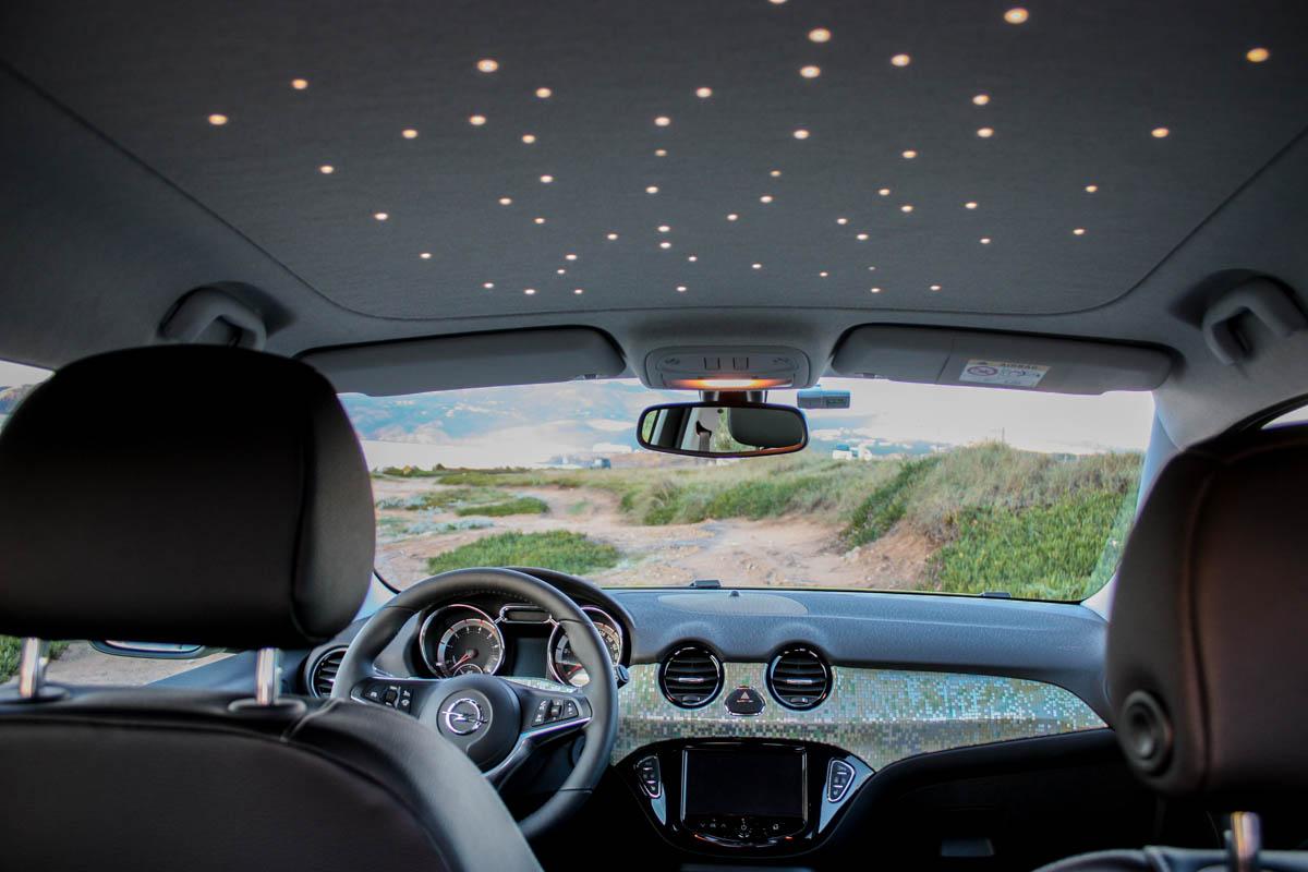 Der Adam positioniert sich gegen den Fiat 500, er ist ein Lifestyle Produkt. Kein Wunder also, dass es optional auch einen Sternenhimmel oder farbig bedruckte Himmel im Innenraum gibt.
