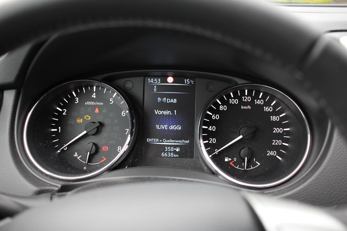 Im Innenraum fühlt man sich direkt wohl, nur die Schalter um die „teilweise nervigen Assistenzsysteme“ abzustellen sind etwas deplatziert. Die Instrumente lassen sich gut ablesen und auch die Bedienung von Infotainment-System sollte keinen Autofahrer vor Probleme stellen. Gut funktioniert die Lenkradfernbedienung und die Kopplung von Smartphones mit dem Nissan Qashqai. Die Freisprechfunktion hat eine gute Qualität und natürlich lässt sich so auch die eigene Musik ins Auto bringen.