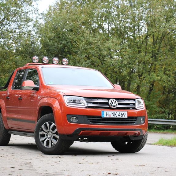 Dass er natürlich auch abseits der Straßen eine gute Figur macht, steht außer Frage. Permanenter Allradantrieb, 23 cm Bodenfreiheit, Sperre an der Hinterachse, Unterfahrschutz. Durch die Blattfedern kommen ein paar härtere Stöße schon mal durch, aber nur durch die erhält der VW Amarok ja auch die hohe Zuladung.