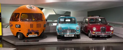 Was hat drei Räder und vorne eine Tür? Klar, die BMW Isetta. Von April 1955 bis März 1956 wurde die erste Version der Isetta gebaut. Im Oktober 1956 kam die zweite Version, Export 250 und 300 in den Handel. Die Modelle unterscheiden sich z.B. durch eine Schiebefensterkonstruktion an den Seiten und die Heckscheibe ist auch etwas kleiner. Die Ausstellfenster fielen der neuen BMW Isetta auch zum Opfer. Der 1-Zylinder 4-Taktmotor hatte einen Hubraum von 0,3 Liter und leistete 13 PS. Das Modell im Museum ist aus dem Jahre 1961.