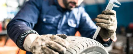 Geben Sie Ihren Pkw zum Reifenwechsel in die Werkstatt, ermitteln die Kfz-Mechaniker Reifenalter, Reifendruck sowie Profiltiefe und analysieren den Zustand der Winter- bzw. Sommerreifen. Wann diese zu erneuern sind, hängt von diversen Kriterien ab: Sind die Sommerreifen jünger als 6, die Winterreifen jünger als 8 Jahre? Weisen die Autoreifen einen Reifendruck auf, der 0,3 Bar über dem angegebenen Wert liegt? Liegt die Profiltiefe über der Mindestgrenze von 1,6 Millimeter (Sommerreifen um die 2,5 mm, Winterreifen 4 mm)?