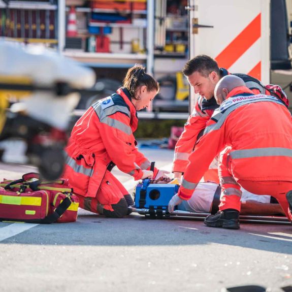 Autos, die nach einem Unfall auf der Straße liegenbleiben, stören den fließenden Verkehr. Besonders gefährlich sind sie aber für Fahrer und Insassen, die noch im Wagen sitzen! Diese müssen schnellstmöglich aus dem Gefahrenbereich gerettet werden. Doch wie funktioniert das? Wenn der Fahrer sich nicht selbst befreien kann, ist Ihre Hilfe gefragt. Von zentraler Bedeutung ist hier der Rettungsgriff! Bevor Sie ihn anwenden, denken Sie daran, den Notruf abzusetzen und die Unfallstelle abzusichern. Denn Ihre Sicherheit geht vor!