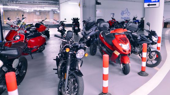 Informieren Sie sich, ob das Parken von Motorrädern und Rollern in dem von ihnen angefahrenen Parkhaus erlaubt ist und ob es spezielle Parkplätze für Krafträder gibt.