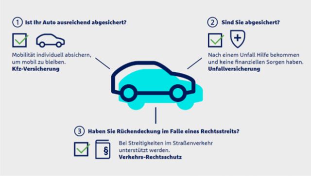 Einmal unaufmerksam oder nur zur falschen Zeit am falschen Ort – schon ist der Verkehrsunfall passiert. Wie gut wären Sie aktuell auf die Folgen vorbereitet? Wie gut könnten Sie Fahrzeugschäden, Streitigkeiten vor Gericht oder gesundheitliche Auswirkungen finanziell tragen?