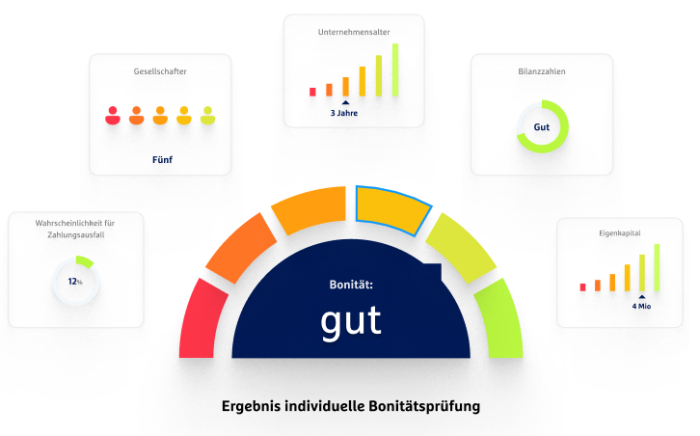 Wir ermitteln im Handumdrehen eine Beurteilung der Ausfallwahrscheinlichkeit und begründen unser Krediturteil auf Basis umfangreicher Kriterien. Dazu zählen beispielsweise: