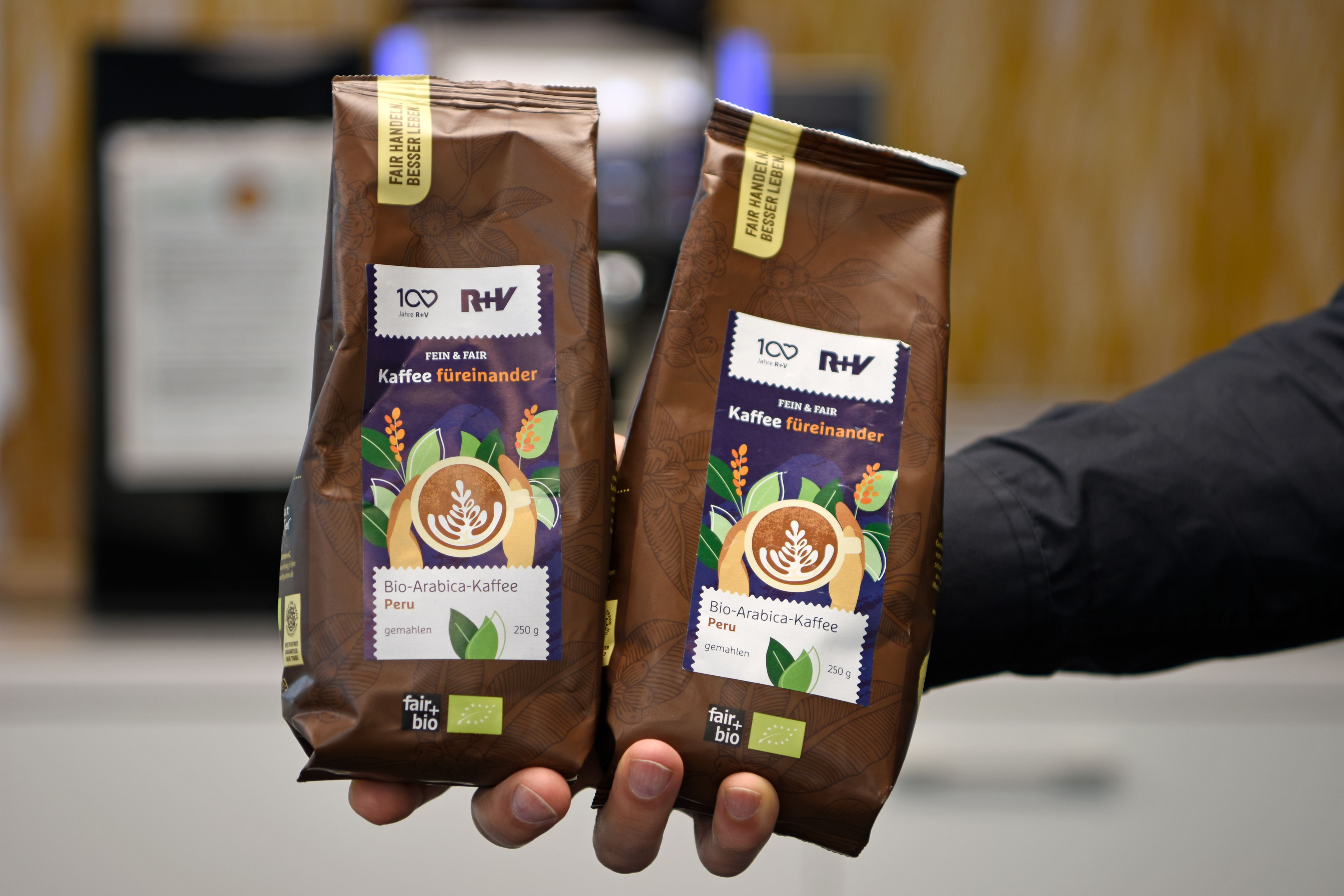 Im vergangenen Jahr hat die R+V ihr 100-jähriges Jubiläum gefeiert und aus diesem Anlass gemeinnützige Projekte in ganz Deutschland mit 1,6 Millionen Euro gefördert – die MissionMiteinander. Dies war der Anstoß für die Mitarbeiteraktion „Kaffee füreinander“. Der R+V-Jubiläumskaffee wurde im Unternehmen sowie über die Fairtrade-Genossenschaft WeltPartner verkauft, die schon seit vielen Jahren ein Kunde der R+V ist. Über WeltPartner wurde der Kaffee auch aus Peru unter fairen Bedingungen bezogen.