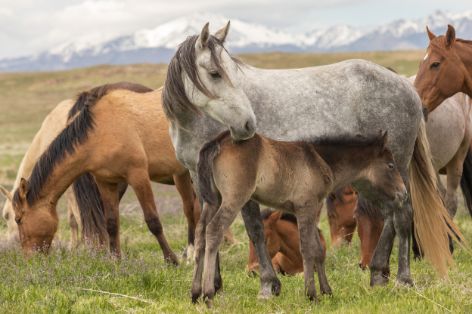 Etwa 16 Stunden verbringen Wildpferde am Tag damit, Steppengras zu futtern. Das Pferdgebiss arbeitet dabei wie ein Mühlstein: Beim Rupfen des Grases schneiden die vorderen Zähne die Halme ab. Die Zunge transportiert dieses zusammen mit Sand aus der Erde in den hinteren Maulbereich, wo die Backenzähne – auch als Mahlzähne bezeichnet – das Gras mit seitwärts gerichteten Malmbewegungen zerkleinern. Zusammen mit dem Speichel wird es so zu einem gut verdaulichen Nahrungsbrei verarbeitet.